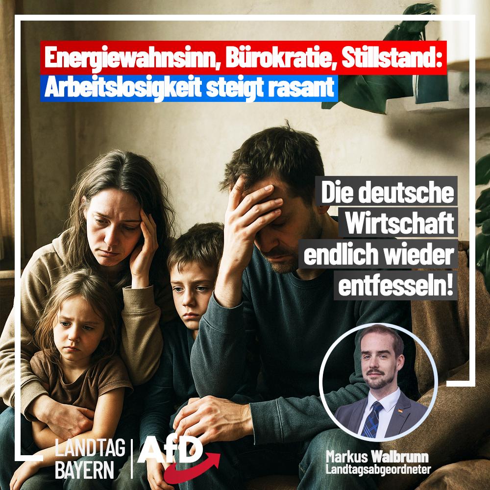 Immer mehr Arbeitslose in Bayern – aber die Ampel und ihre Erben aus Union und SPD klopfen sich weiter selbst auf die Schulter. Während Bürger und Mittelstand verzweifeln, treibt die Politik mit absurden Energiekosten, lähmender Bürokratie und null Tatkraft unsere Wirtschaft bewusst gegen die Wand.